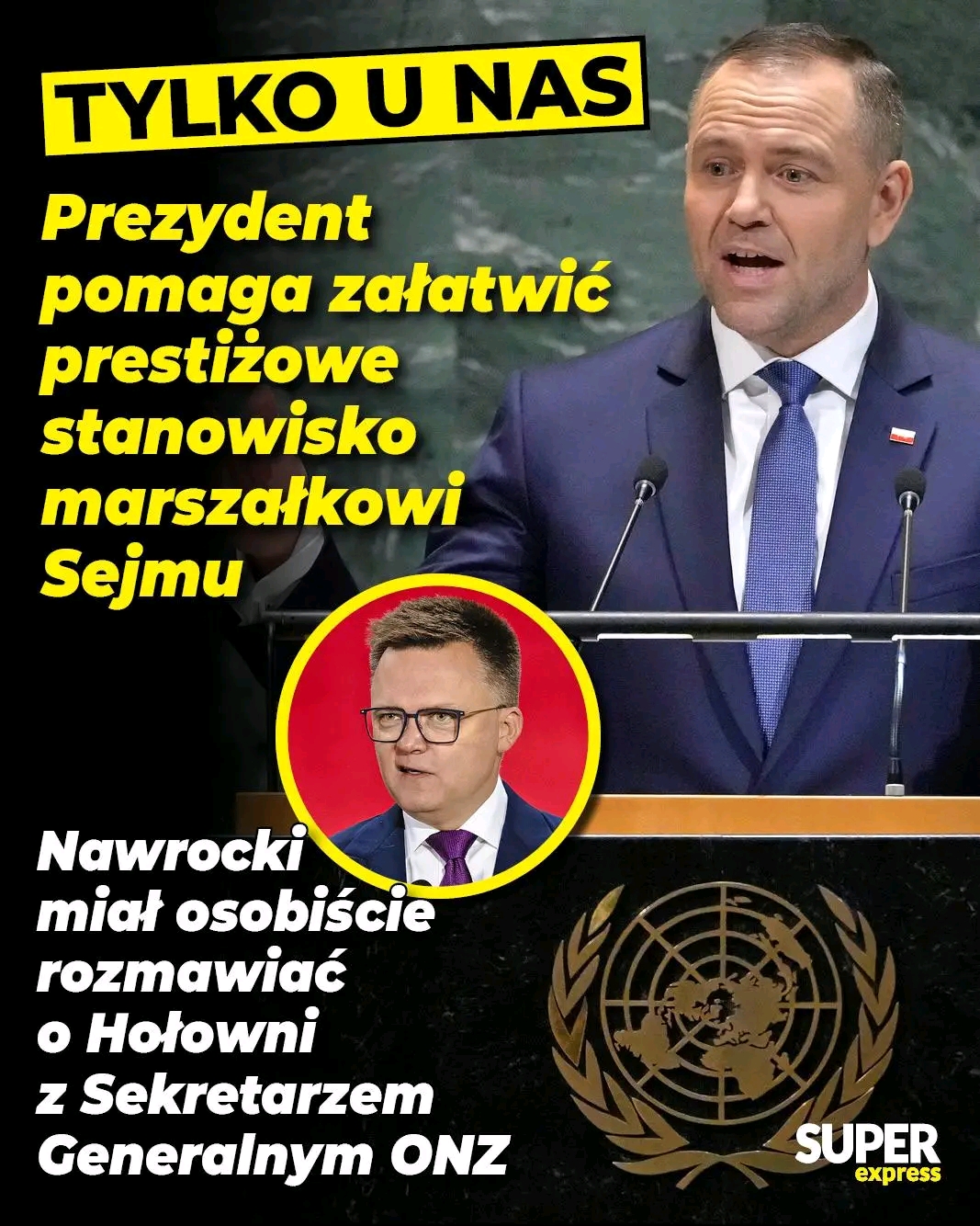 Prezydent Nawrocki miał osobiście rozmawiać o Hołowni z Sekretarzem Generalnym ONZ.