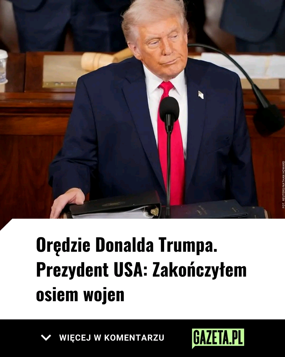 – Z dumą przywracamy bezpieczeństwo Amerykanom w kraju, ale także za granicą – powiedział Donald Trump podczas swojego orędzia na Kapitolu. Następnie przekonywał, że w ciągu pierwszych dziesięciu miesięcy swojej drugiej kadencji “zakończył osiem wojen”. – W tym Kambodży z Tajlandią, Pakistanu z Indiami, która byłaby wojną nuklearną, 35 mln ludzi zginęłoby, gdyby nie ja, Kosowa z Serbią, Izraela z Iranem, Egiptu z Etiopią, Armenii z Azerbejdżanem, Kongo z Rwandą – wyliczał. Wspomniał też o Strefie Gazy.
