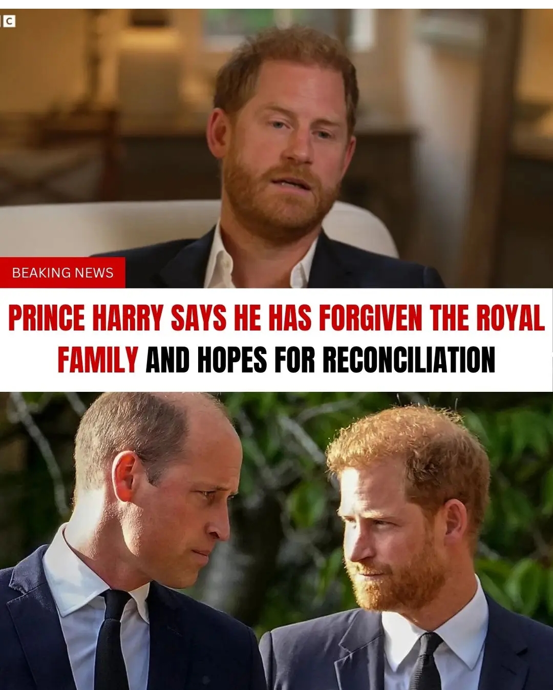 He said his wish for reconciliation comes largely from concern for his father’s health, following the King’s ongoing battle with cancer.