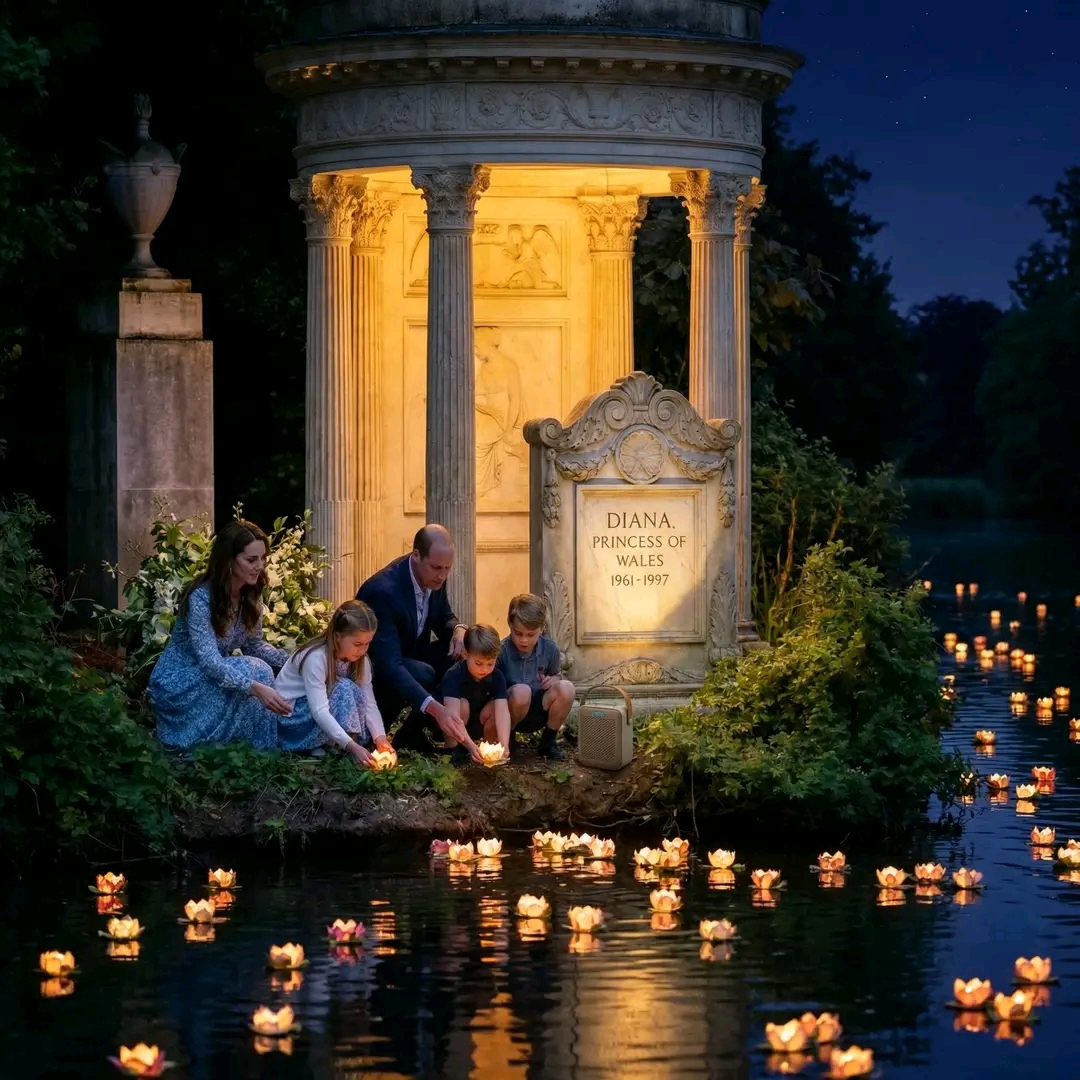 In a breathtaking and deeply personal display of love, the Prince and Princess of Wales, along with their three children, recently gathered at the banks of the river at Althorp House to honor the late Princess Diana. While the world remembers her as the “People’s Princess,” to Prince William and his children, she remains a guiding light—a sentiment made literal as floating lanterns illuminated the water in a stunning commemorative ceremony. 🕯️🌊