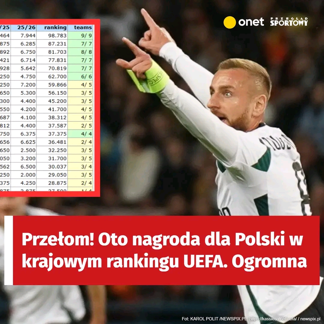 Polska zanotowała kolejny awans w krajowym rankingu UEFA! To dla nas znakomita wiadomość, bo jesteśmy niemal pewni kolejnej nagrody w pucharach. Ale jest też gorsza wiadomość, a to wyniki naszych najgroźniejszych rywali w walce o bezpośredni awans do Ligi Mistrzów. Oto szczegóły.