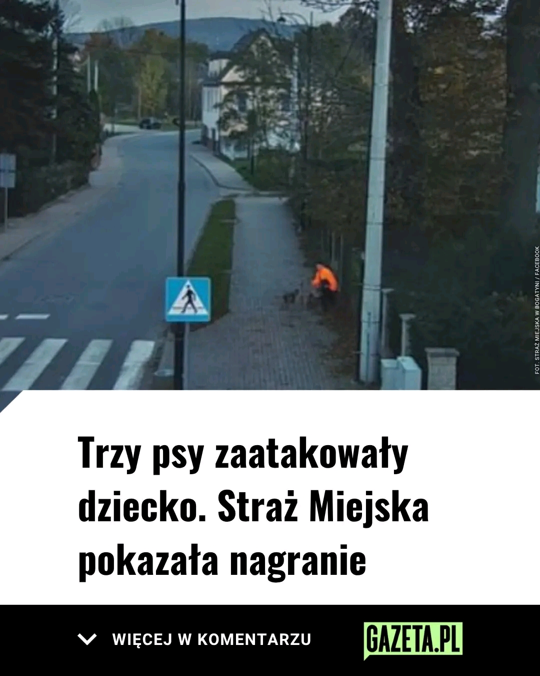 Do komunikatu dołączono również nagranie z miejsca zdarzenia. Widać na nim, jak chłopiec idzie chodnikiem, a za nim podążają trzy małe psy. W pewnym momencie zwierzęta go atakują. Kierowca przejeżdżający obok zatrzymuje się i odstrasza psy, pomagając dziecku. “Chcielibyśmy, również zwrócić państwa uwagę na zachowanie kierowcy samochodu osobowego, który narażając swoje zdrowie, nie pozostał obojętny. Pod pana adresem kierujemy wyrazy podziękowania za obywatelską postawę godną wielkiego uznania” – podkreślono w komunikacie. Strażnicy zwrócili się również z prośbą do ewentualnych świadków zdarzenia lub osób pokrzywdzonych o zgłoszenie się do siedziby Straży Miejskiej w Bogatyni ul. Daszyńskiego 29 w Bogatyni.