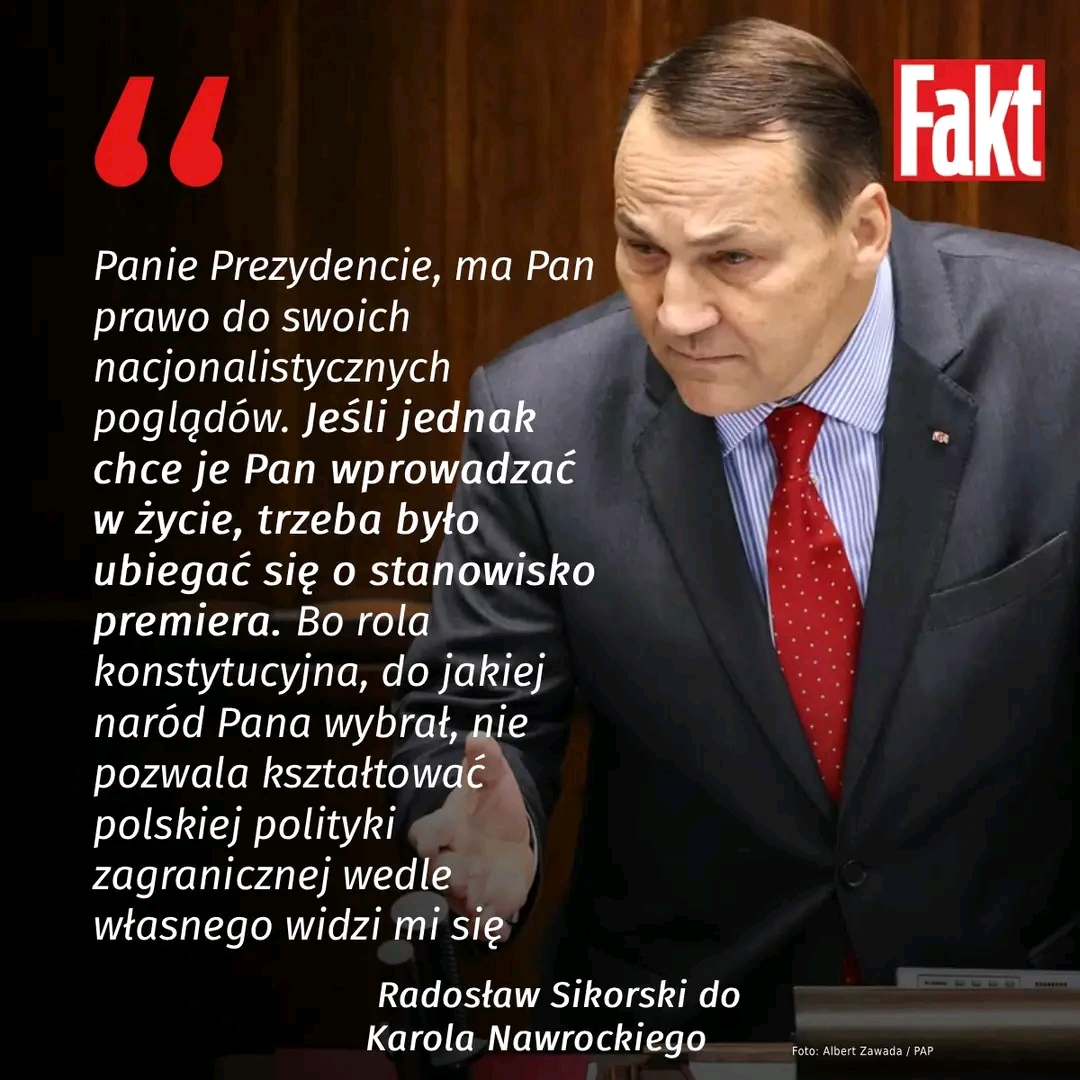 W tym samym czasie na jego profilu X pojawił się wpis skierowany wprost do prezydenta Karola Nawrockiego. Minister przypomniał, że zgodnie z Konstytucją politykę zagraniczną formułuje rząd, zaznaczając: “Polska nie może mieć dwóch sprzecznych polityk zagranicznych”. Podkreślił, że członkostwo w UE pozostaje fundamentem bezpieczeństwa i dobrobytu państwa.