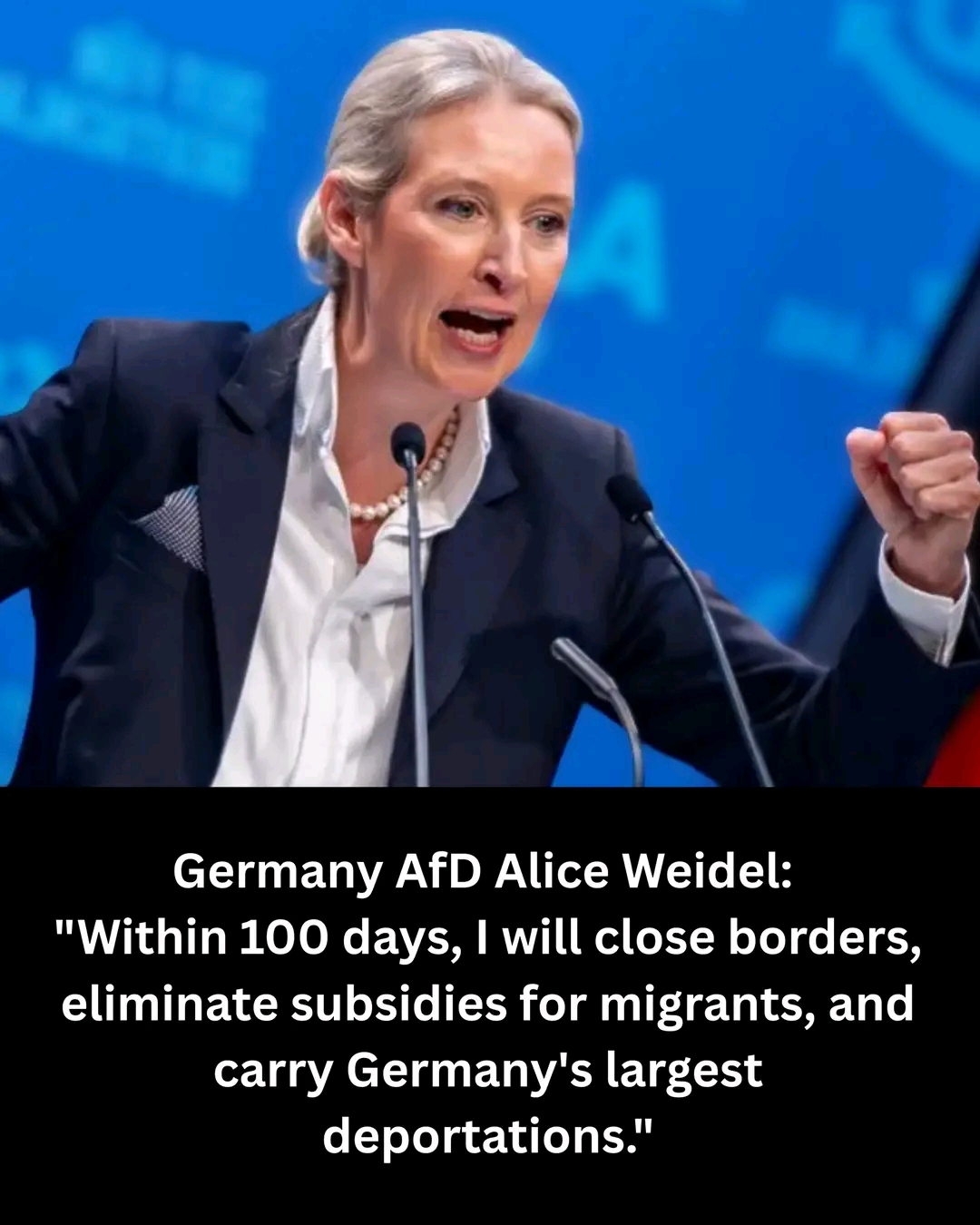 Alice Weidel, co-leader of the Alternative for Germany (AfD) party and their candidate for chancellor, has pledged that within 100 days of taking power, she will close German borders, eliminate subsidies for migrants, and carry out the largest deportation operation in the country’s history.