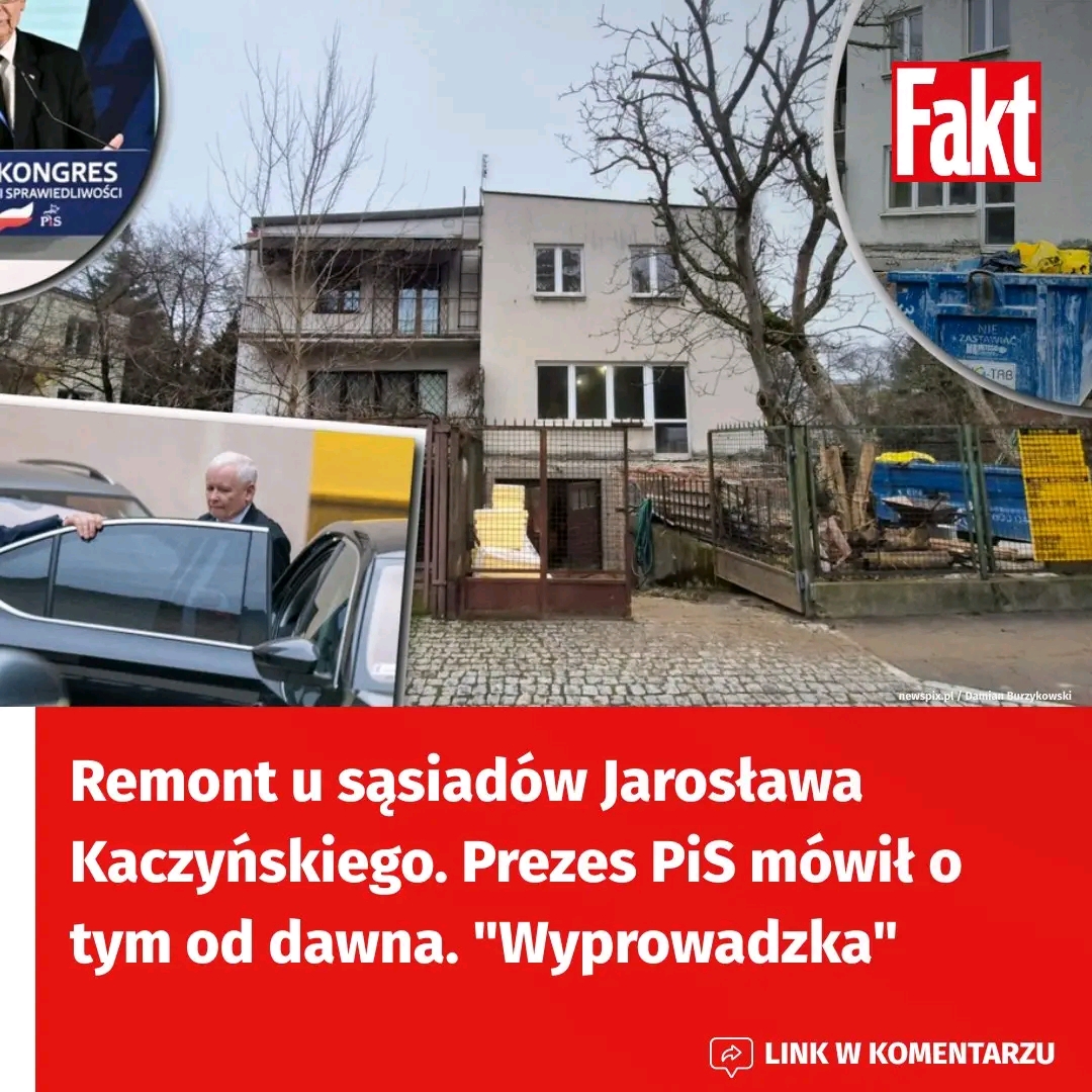 W części bliźniaka przylegającego do domu Jarosława Kaczyńskiego na warszawskim Żoliborzu prace remontowe trwają pełną parą. Jak ustalił “Fakt”, prezes PiS wiedział o tym, że za ścianą przez wiele tygodni będzie głośno. Wspominał nawet swoim bliskim współpracownikom o wyprowadzce. — Mówiło się o tym już przed wakacjami, może nawet na początku tego roku — mówi nam informator. Okazuje się, że część willi, która jest obecnie remontowana, już dawno była wystawiona na sprzedaż.
