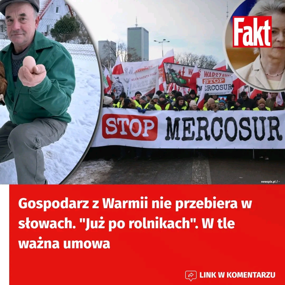 Klamka zapadła, w sobotę 17 stycznia, szefowa Komisji Europejskiej Ursula von der Leyen podpisała umowę o wolnym handlu między Unią Europejską a krajami Ameryki Południowej tzw. Mercosur. Umowa została podpisana m.in. wbrew Francji Austrii, a także Polski. To właśnie polscy rolnicy mocno protestują przeciwko międzynarodowej umowie. — Polska wieś zostanie doszczętnie zniszczona. Już po rolnikach — mówi “Faktowi” Eugeniusz Mokański rolnik z woj. warmińsko-mazurskiego.