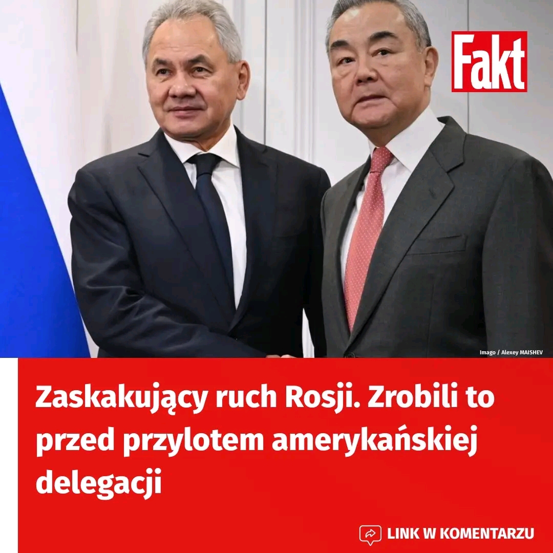 Spotkanie Szojgu z Wangiem Yi odbywa się na kilka godzin przed przylotem do Moskwy amerykańskiej delegacji ze specjalnym wysłannikiem prezydenta USA Steve’em Witkoffem.