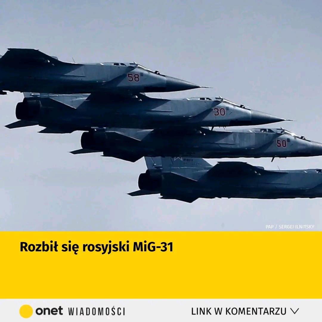 Samolot, jak poinformowało rosyjskie ministerstwo obrony, wykonywał planowy lot szkoleniowy. “Załoga samolotu katapultowała się, życie pilotów nie jest zagrożone” — poinformowało Ministerstwo Obrony, dodając, że MiG-31 spadł w bezludnym terenie, a lot odbywał się bez uzbrojenia.