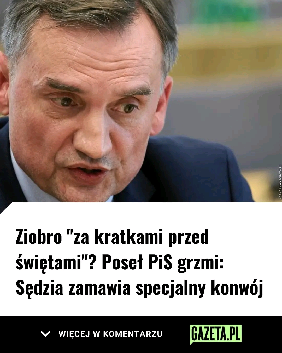 “Tusk chce, by Ziobro przed świętami trafił za kratki” – napisała we wpisie na X TV Republika. Zbigniew Ziobro postanowił odnieść się do tych doniesień. “Nielegalnie przejęta prokuratura. Nielegalnie odsunięci prezesi sądów i sędziowie. Do tego bezprawna likwidacja losowego przydziału spraw w sądach odwoławczych. A w mojej sprawie ‘wylosowała się’ sędzia Agnieszka Prokopowicz z ‘Iustitii’. I, jak widać, ‘wylosowała się’ od razu z gotowym rozstrzygnięciem. Bo jeśli miesiąc przed jego ogłoszeniem, zanim zapoznała się z materiałem dowodowym, zamawia specjalny konwój, by zawiózł mnie za kratki, to trudno udawać, że czegoś tu nie widać” – napisał w poniedziałek 24 listopada były minister sprawiedliwości.
