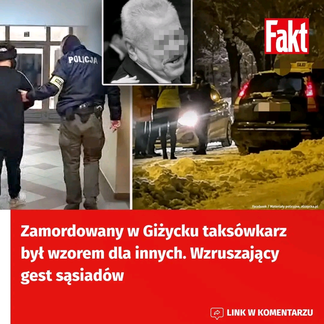 Pan Leszek, zamordowany w sylwestrową noc w Giżycku taksówkarz, znany był w okolicy ze swojej bezinteresownej pomocy, nigdy nie odmawiał wsparcia. — Kilka razy pomagał mi uruchomić samochód i nigdy nie chciał za to ani grosza. Zawsze był uprzejmy i koleżeński — mówi “Faktowi” pan Ireneusz, jego sąsiad. Mieszkańcy Giżycka w ramach podziękowania za pomoc, jaka płynęła od 78-latka, zdobyli się na wzruszający gest.