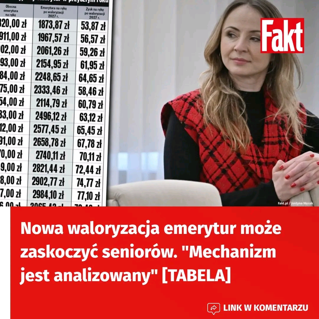 Minister rodziny Agnieszka Dziemianowicz-Bąk już w zeszłym roku zapowiadała, że rząd może zwiększyć wskaźnik waloryzacji mocniej, uwzględniając wzrost płac. I, by zamiast 20 proc., wliczać 35 proc. realnego wzrostu wynagrodzeń. — Obecnie jest za wcześnie, aby mówić o ewentualnych zmianach w zakresie przyszłorocznej waloryzacji, nie znając m.in. uwarunkowań społeczno-gospodarczych. Podkreślenia jednak wymaga, że mechanizm obowiązującej waloryzacji jest na bieżąco analizowany — taką informację przekazało “Faktowi” biuro prasowe resortu rodziny. Pierwsze założenia waloryzacji emerytur i rent na 2027 r. rząd przedstawi w czerwcu.
