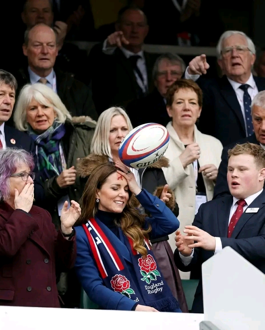 While enjoying the vibrant atmosphere of the match, the Duchess was unexpectedly struck by a rugby ball that flew into the stands. Witnesses said the incident caused a brief moment of panic, with spectators immediately rushing to her safety. On-site medical staff quickly assessed her condition, and she was seen smiling and waving to the crowd shortly after the incident, reassuring everyone that she was alright.