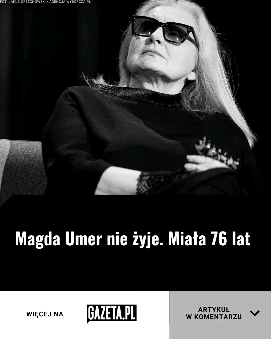 Magda Umer nie żyje. Piosenkarka, wykonawczyni poezji śpiewanej, autorka recitali, dziennikarka, reżyserka, scenarzystka i aktorka miała 76 lat.
