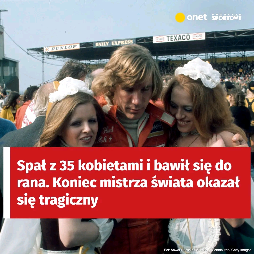 Zaprosił do swojego apartamentu 35 kobiet, zamówił hektolitry alkoholu oraz wszystkie znane używki i imprezował całą noc. Kilka godzin później przebrał się w kombinezon, zasiadł za kierownicą bolidu i został mistrzem świata. Kobiety wylatywało rano, a po południu przylatywały nowe. Twierdził, że spał z pięcioma tysiącami kobiet w swoim życiu. Ale jego koniec był tragiczny. Nie było w dziejach Formuły 1 postaci barwniejszej od Jamesa Hunta. Jego historię przypomniał serbski Sportal.