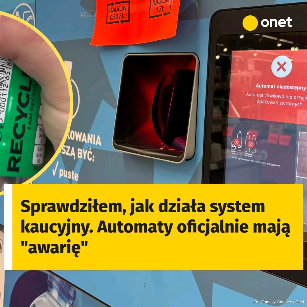 Wychodząc ze sklepu, natrafiam tuż przy kasach na automat, który służy do zwrotu objętych kaucją opakowań. Nowa maszyna stoi i świeci się, gotowa do pracy. Na jej obudowie znajduje się nawet precyzyjna instrukcja użytkowania. Jednak problem w tym, że na jej wyświetlaczu pojawia się komunikat: “Automat chwilowo nie przyjmuje opakowań zwrotnych”.