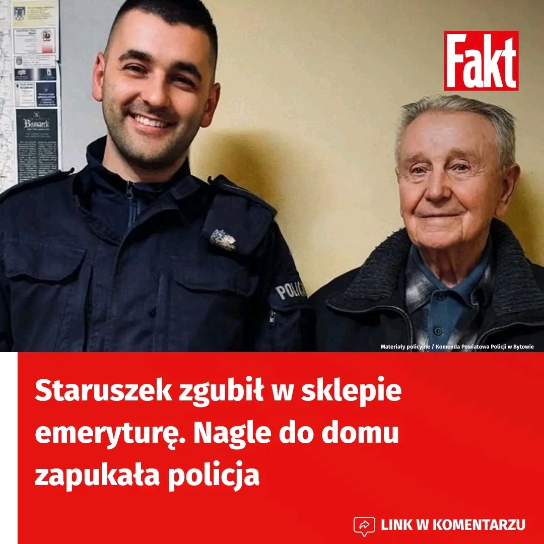 98-letni mieszkaniec Miastka (woj. pomorskie) zgubił w sklepie emeryturę. Starszy pan z nikim nie podzielił się swoim zmartwieniem. Liczył, że pieniądze się znajdą, ale kiedy mijał czas, to zaczynał tracić nadzieję. Wtedy stało się coś nieoczekiwanego. Do domu seniora przyszedł dzielnicowy. — Sprawą zajął się dzielnicowy mł. asp. Adam Hasulak, który przeglądając sklepowy monitoring, rozpoznał starszego mężczyznę, któremu gotówka wypadła. Jak się okazało senior mieszka w rejonie służbowym dzielnicowego — opowiada “Faktowi” sierż. szt. Dawid Łaszcz, rzecznik bytowskiej policji.