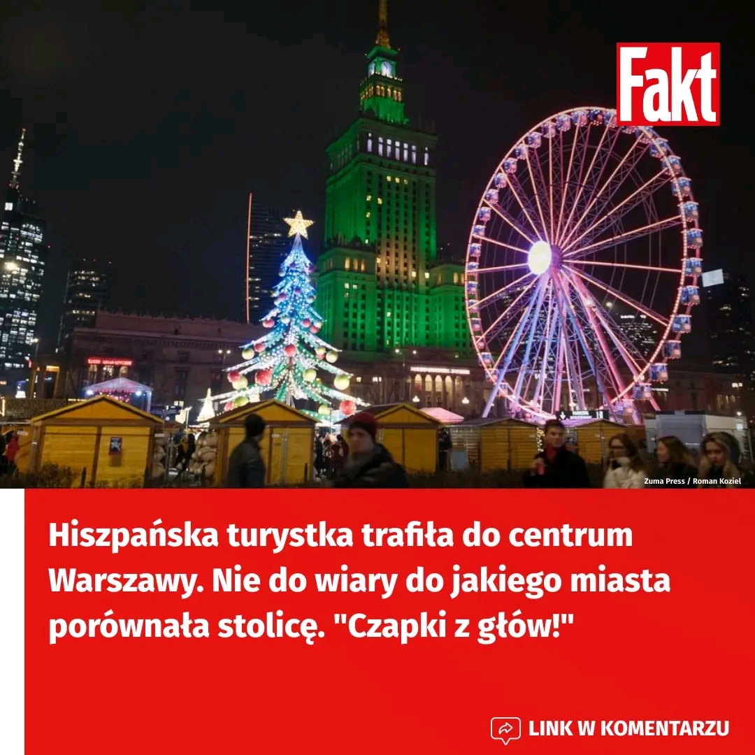 Świąteczna atmosfera, morze świateł i panorama miasta, która robi wrażenie nawet na najbardziej doświadczonych podróżnikach. Hiszpańska turystka odwiedzająca Warszawę w okresie bożonarodzeniowym nie spodziewała się takiego widoku — a stolica Polski skojarzyła jej się z jednym z najsłynniejszych miast świata.