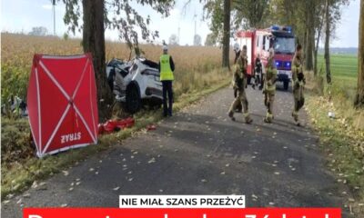 Tragedia w gminie Płośnica (woj. warmińsko-mazurskie). W czwartek (23 października) na trasie Zalesie-Niechłonin zginął 34-letni mężczyzna. Kierowany przez niego VW Taiga uderzył w drzewo. 34-latek zginął...