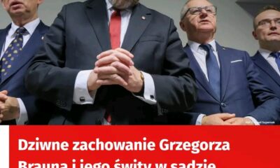 Kuriozalne sceny w sądzie: Grzegorz Braun i jego zwolennicy zaskoczyli wszystkich nietypowym zachowaniem na korytarzu. Co się tam wydarzyło?
