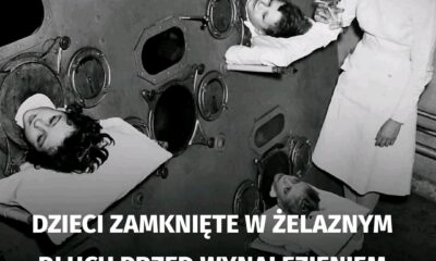 6 października 1956 r. Albert Sabin ogłosił, że jego doustna szczepionka przeciwko polio jest gotowa do testów. Na zdjęciu dzieci chore na polio w tzw. „żelaznych...