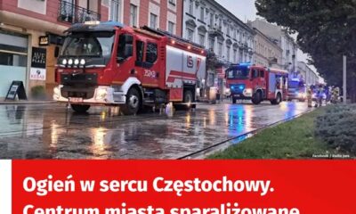 Ogień w sercu Częstochowy. Centrum miasta sparaliżowane. Dziesiątki strażaków na miejscu
