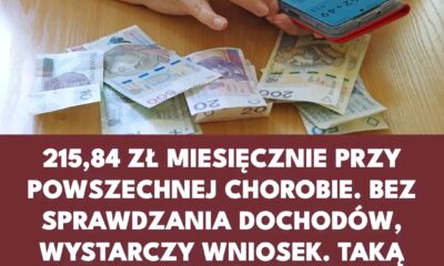 215,84 zł miesięcznie przy powszechnej chorobie. Bez sprawdzania dochodów, wystarczy wniosek