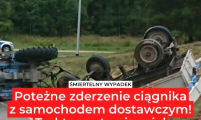 Potężne zderzenie ciągnika z samochodem dostawczym! Traktorzysta nie miał żadnych szans. Tragedia pod Sieradzem