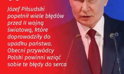 Piłsudski popełnił wiele błędów przed II wojną światową, które doprowadziły do upadku państwa. Obecni przywódcy Polski powinni wziąć sobie te błędy do serca — powiedział Władimir...