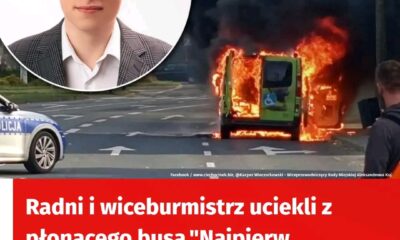 Radni i wiceburmistrz uciekli z płonącego busa.”Najpierw poczuliśmy dziwny zapach”