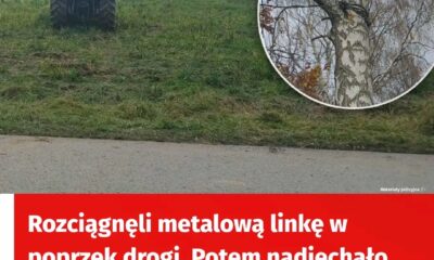 Metalowa linka przechodziła prostopadle przez drogę. Od drzewa do ciągnika. Obok byli dwaj mężczyźni. Gdy nadjechało auto, za późno było na reakcję. Samochód zaczepił za linkę,...