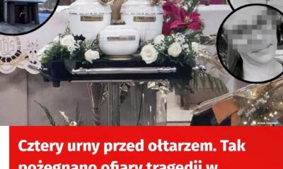 Tragedia w Chełmnie wstrząsnęła całą Polską. Cztery urny przed ołtarzem symbolizują niewyobrażalny ból i stratę.