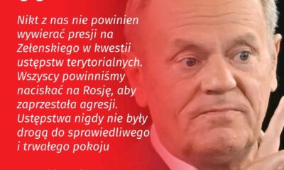 Nikt z nas nie powinien wywierać presji na Zełenskiego w kwestii ustępstw terytorialnych” — przekazał Donald Tusk. Tym samym premier odniósł się do szokujących słów Donalda...
