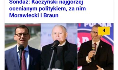 Sondaż: Kaczyński najgorzej ocenianym politykiem, za nim Morawiecki i Braun
