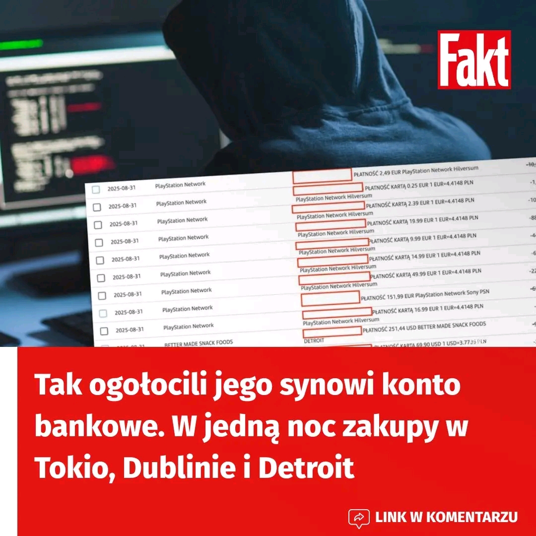 Tak ogołocili jego synowi konto bankowe. W jedną noc zakupy w Tokio, Dublinie i Detroit