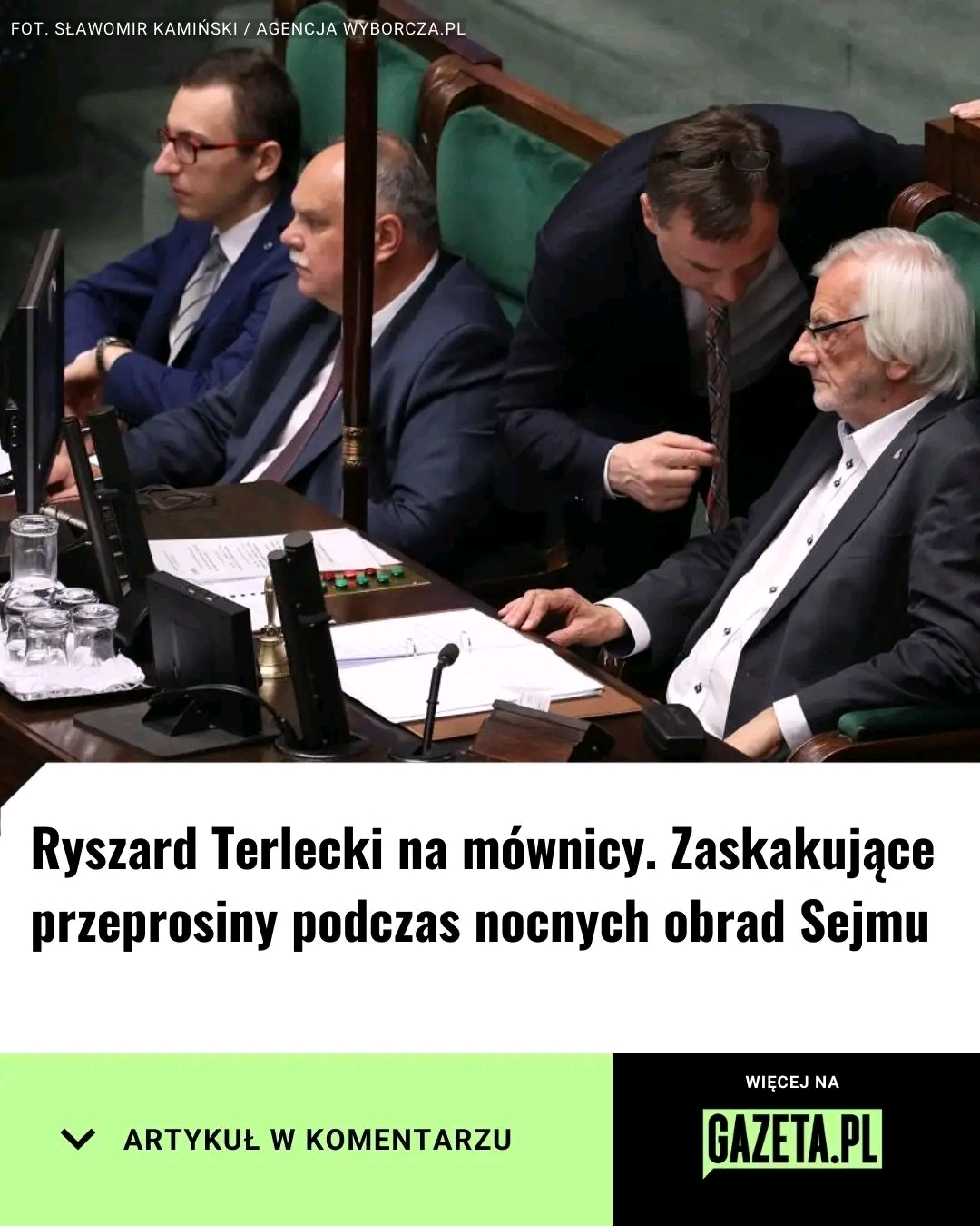 Ryszard Terlecki z Prawa i Sprawiedliwości przeprosił w czasie piątkowych, nocnych obrad Sejmu Sławomira Nitrasa za obraźliwe słowa, którymi określał polityka publicznie w 2017 i 2020 roku. Terlecki był wówczas wicemarszałkiem Sejmu i do posła KO mówił m.in. “siadaj, pajacu”.