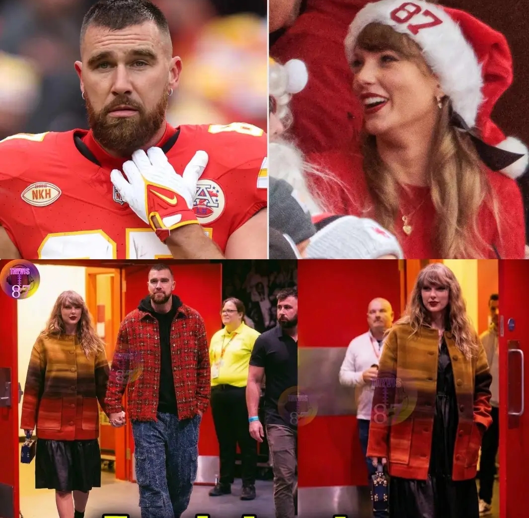 Kelce, imposing in stature after coming off the field, became noticeably gentle in his demeanor. He guided her gently through the stadium hallway, consciously slowing his long stride so that they remained perfectly in step. Swift, in turn, subtly leaned into him, her shoulder almost brushing his arm as she matched his pace, her free hand swinging a small handbag.