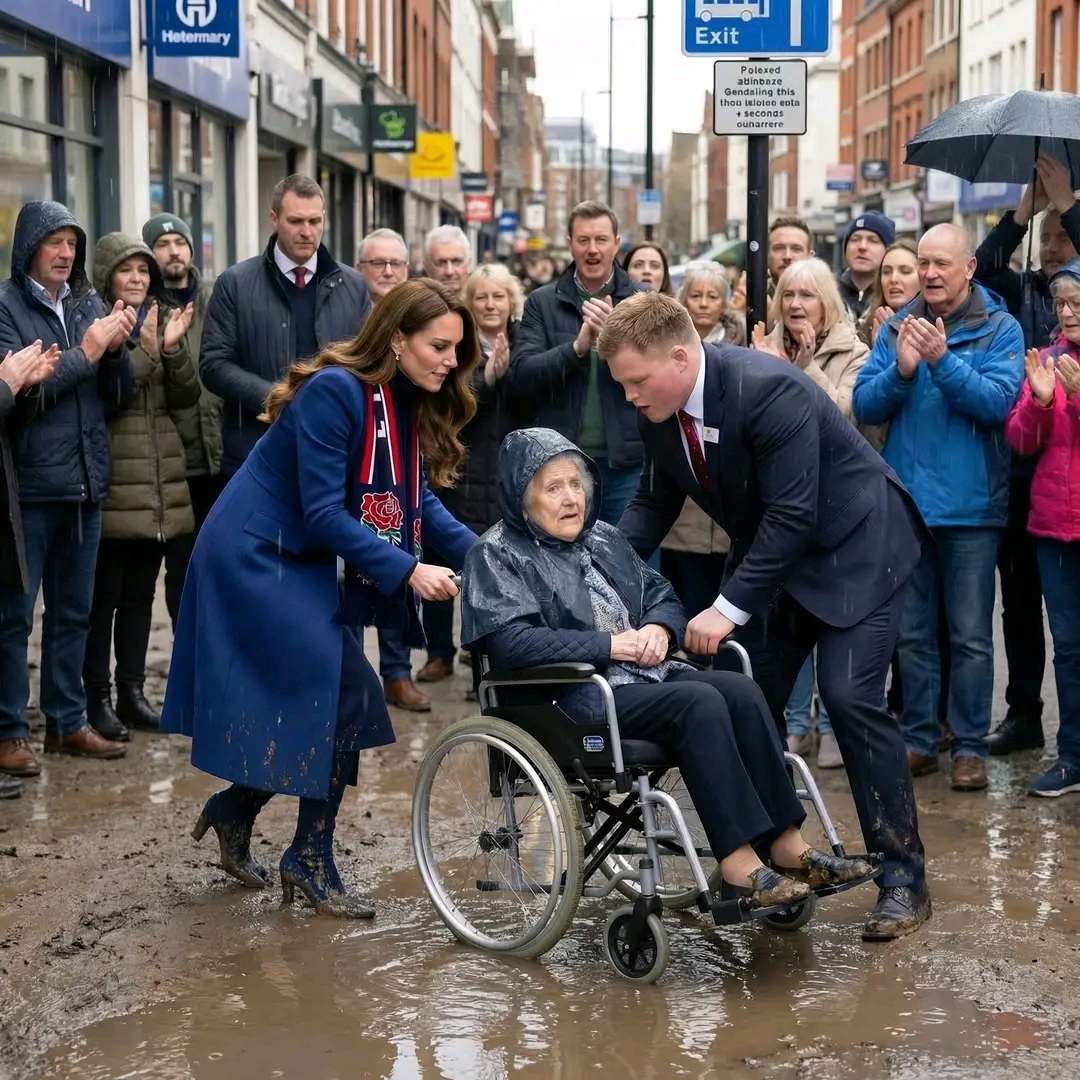 While the atmosphere was electric with the spirit of rugby, an elderly woman found herself in a distressing situation, trapped in a deep, muddy puddle near the sidelines. In a moment that stunned onlookers, Princess Kate did not hesitate.
