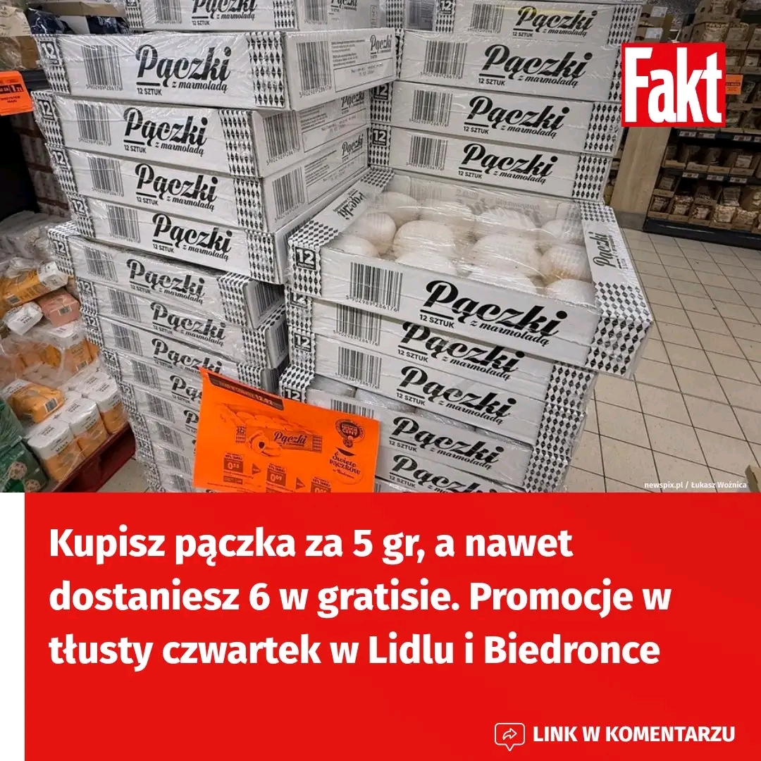 Biedronka około godz. 11 ogłosiła, że na 6 pączków gratis mogą liczyć klienci, którzy wydadzą co najmniej 99 zł.