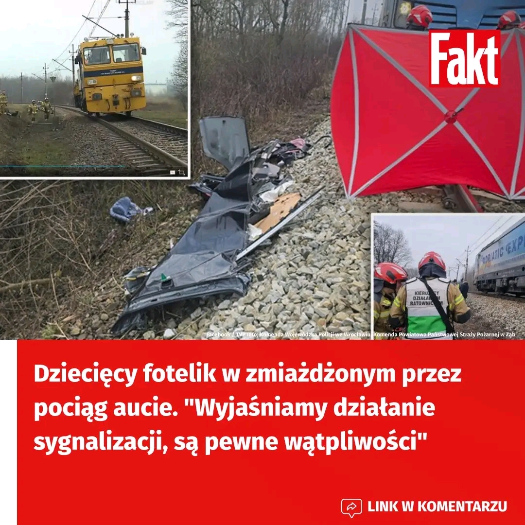Para 31-latków zginęła w wypadku na przejeździe kolejowym w Ziębicach (woj. dolnośląskie). W zmiażdżonym aucie znaleziono dziecięcy fotelik. Nie było w nim dziecka. Córeczka pary była wtedy pod opieką babci. — Prokuratura Rejonowa w Ząbkowicach Śląskich prowadzi już postępowanie. Wyjaśniamy kwestie działania sygnalizacji, są pewne wątpliwości, więc zabezpieczone zostały wszystkie nagrania z lokomotywy oraz pojazdów, które były w pobliżu — mówi “Faktowi” prok. Mariusz Pindera, rzecznik Prokuratury Okręgowej w Świdnicy.