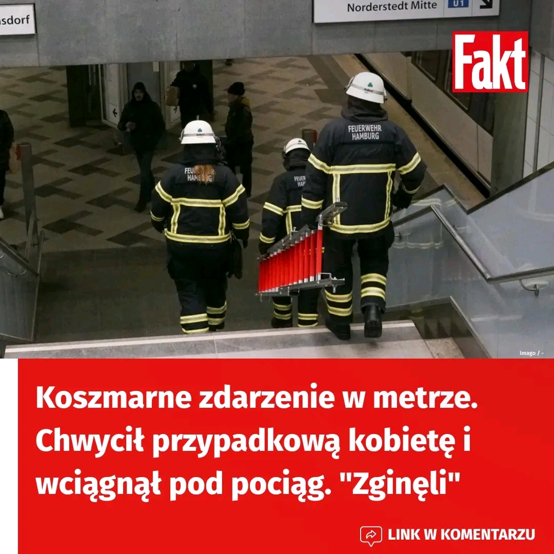 Tragedia na stacji Wandsbek-Markt w Hamburgu. Mężczyzna wciągnął przypadkową kobietę pod pociąg. Policja bada okoliczności zdarzenia.