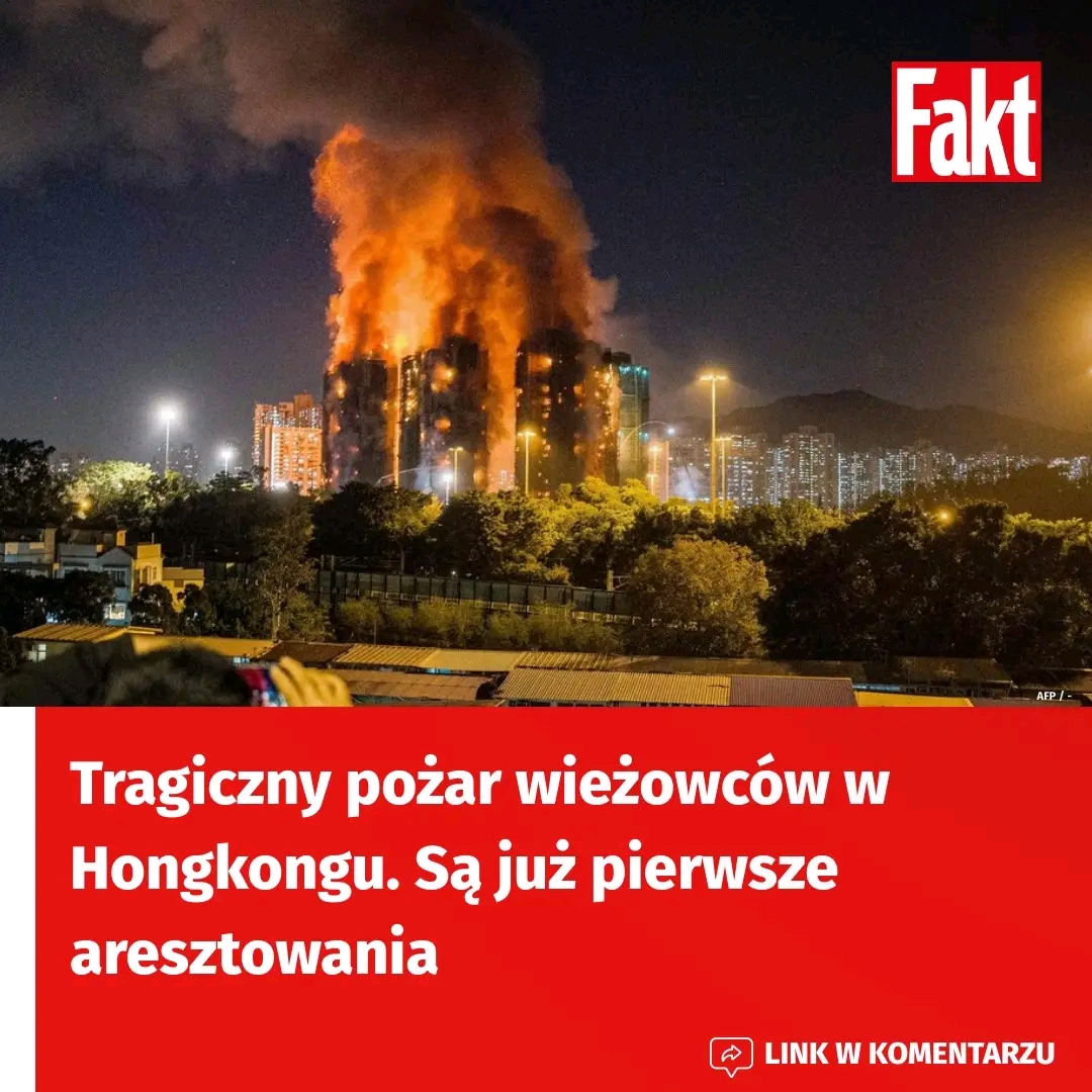 Cały świat jest wstrząśnięty tragedią w Hongkongu, jakiej nie widziano od dekad. Pożar kompleksu wieżowców Wang Fuk Court w dzielnicy Tai Po zebrał śmiertelne żniwo — zginęło co najmniej 55 osób, a aż 279 wciąż uznaje się za zaginione. Chińskie służby nie próżnują — już zatrzymano trzy osoby podejrzane o zaniedbania, które mogły doprowadzić do tej katastrofy.