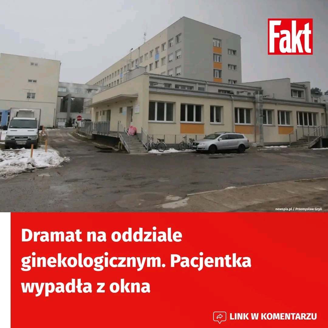 Dramat w szpitalu w Gryficach (woj. zachodniopomorskie). 34-letnia pacjentka oddziału ginekologiczno-położniczego wypadła z okna. Jest w ciężkim stanie. Wyjaśnieniem dokładnych okoliczności tego zdarzenia zajmuje się policja i prokuratura.