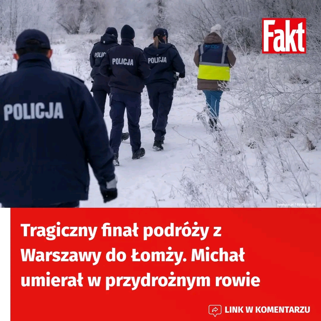 Bliscy szukali go przez tydzień. Nie mieli pojęcia, że stanie się taka tragedia. 37-letni Michał z Łomży (woj. podlaskie) zmarł z wychłodzenia w przydrożnym rowie. Prokuratura prowadzi śledztwo w tej sprawie. Pierwsze ustalenia są wstrząsające. — Michał P. podróżował samochodem z ustalonymi już osobami z Warszawy do Łomży. W godzinach nocnych, przy bardzo niskiej temperaturze otoczenia, został pozostawiony przez nich bez ubrania wierzchniego na drodze S61. Zwłoki mężczyzny ujawniono dopiero w dniu 30 stycznia — przekazała prok. Elżbieta Edyta Łukasiewicz, rzeczniczka Prokuratury Okręgowej w Ostrołęce.