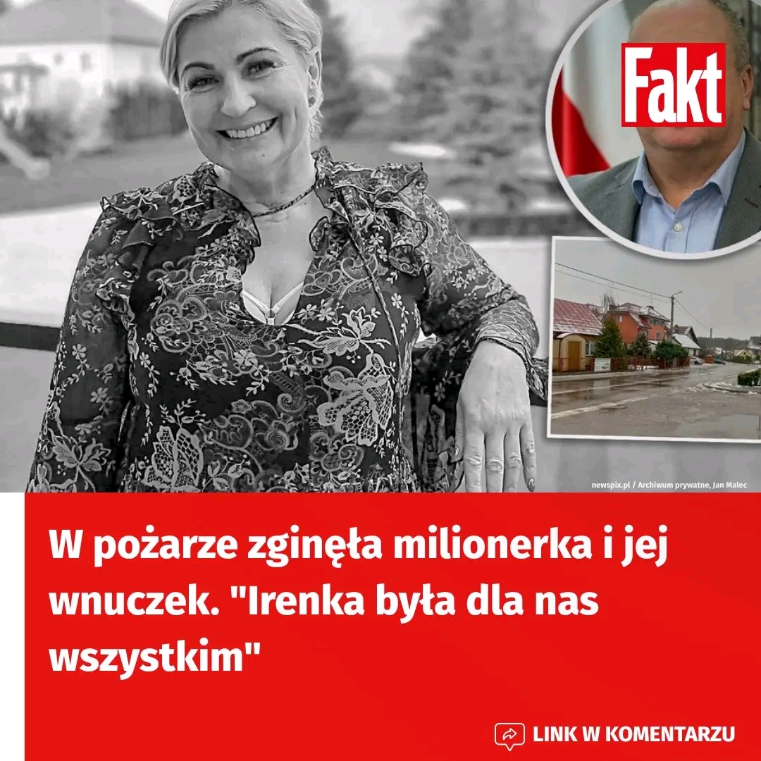 Zginęła tragicznie w pożarze razem ze swoim 2-letnim wnuczkiem. Irena Rupińska (†54 l.), milionerka, filantropka i współwłaścicielka prężnie działającej firmy wydobywczej, dla mieszkańców podlaskiego Szumowa znaczyła znacznie więcej niż tylko nazwisko z listy najbogatszych Polaków. — Dla nas to była po prostu Irenka, dobra dusza gminy. Bez rozgłosu wspierała strażaków, dzieci, chóry i każdego, kto potrzebował pomocy — mówią reporterowi “Faktu” ci, którzy znali ją najlepiej. Dziś nikt nie może pogodzić się z jej nagłym odejściem. Pogrzeb odbędzie się w piątek, 28 listopada. Swój udział zapowiedziały setki osób. Tych, którym kiedyś pomogła, i tych, którzy po prostu chcą ją pożegnać.
