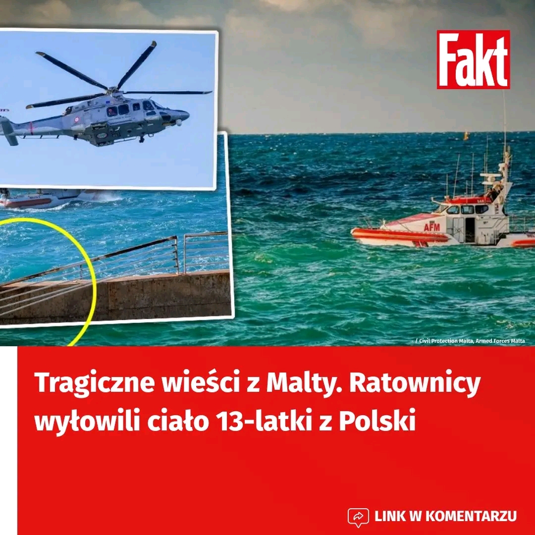Ratownicy pracowali dzień i noc w nadziei na odnalezienie polskiej dziewczynki, którą porwała fala, żywej. Niestety, zostałem poinformowany, że nurkowie znaleźli dziewczynkę martwą. Zapewniamy rodzinie wszelką pomoc za pośrednictwem Zespołu Wsparcia Policji” — przekazał minister spraw wewnętrznych Malty Byron Camilleri.
