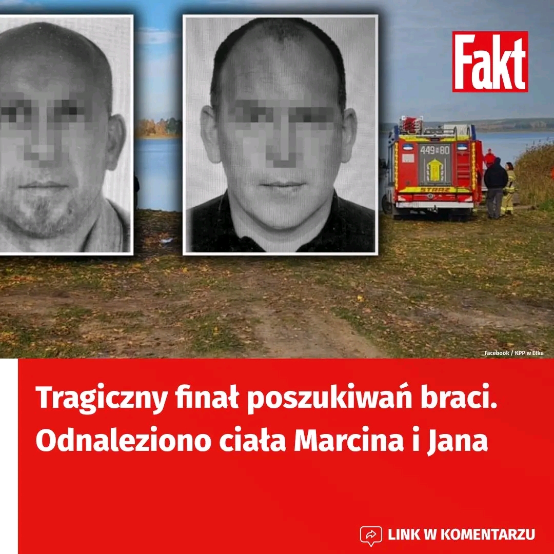 Marcina i Jana widziano po raz ostatni w czwartek, 30 października. Bracia wybrali się do nieodległego powiatu giżyckiego. Na ryby. Gdy nie wrócili do domu, ich najbliżsi wszczęli alarm. Rozpoczęły się poszukiwania. Niestety, ta historia skończyła się tragicznie. Znaleziono ciała. Policja potwierdziła, że to zaginieni.
