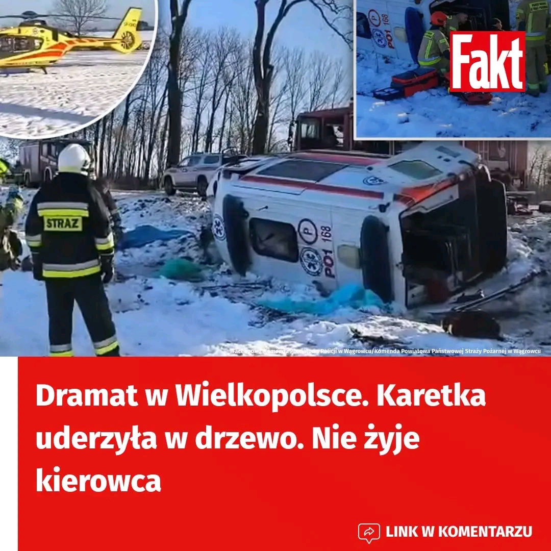 Dramatyczny wypadek w pobliżu miejscowości Wągrowiec (woj. wielkopolskie). Karetka pogotowia ratunkowego z dwoma pacjentkami na pokładzie wypadła z drogi i uderzyła w drzewo. Kierowca nie przeżył. Pozostałe trzy osoby trafiły do szpitala. Na miejscu pracuje policja pod nadzorem prokuratora. Co obecnie wiadomo na temat tego zdarzenia?