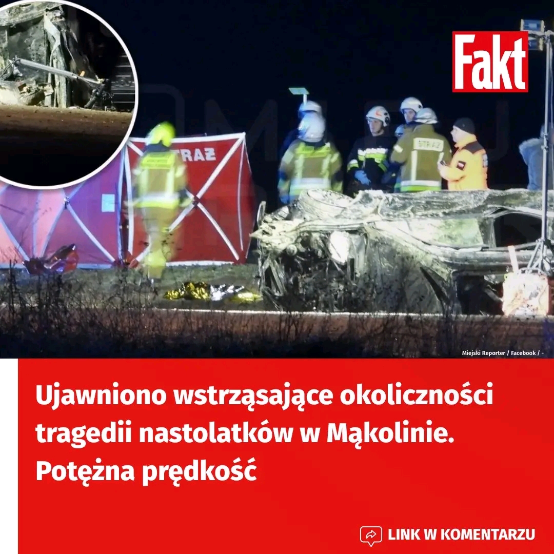 14-latka nie żyje. Jej niewiele starsi koleżanka i kolega walczą o życie w szpitalach, a dwie kolejne osoby odniosły lżejsze obrażenia. To tragiczny bilans wypadku w Mąkolinie niedaleko Płocka (woj. mazowieckie). — Stan 16-latki i 17-latka jest krytyczny — przekazała “Faktowi” podkom. Monika Jakubowska z policji w Płocku. Nieoficjalnie wiadomo, że licznik bmw, którym jechali, zatrzymał się na prędkości 160 km na godz. Jest podejrzenie, że pasażerowie nie mieli zapiętych pasów.