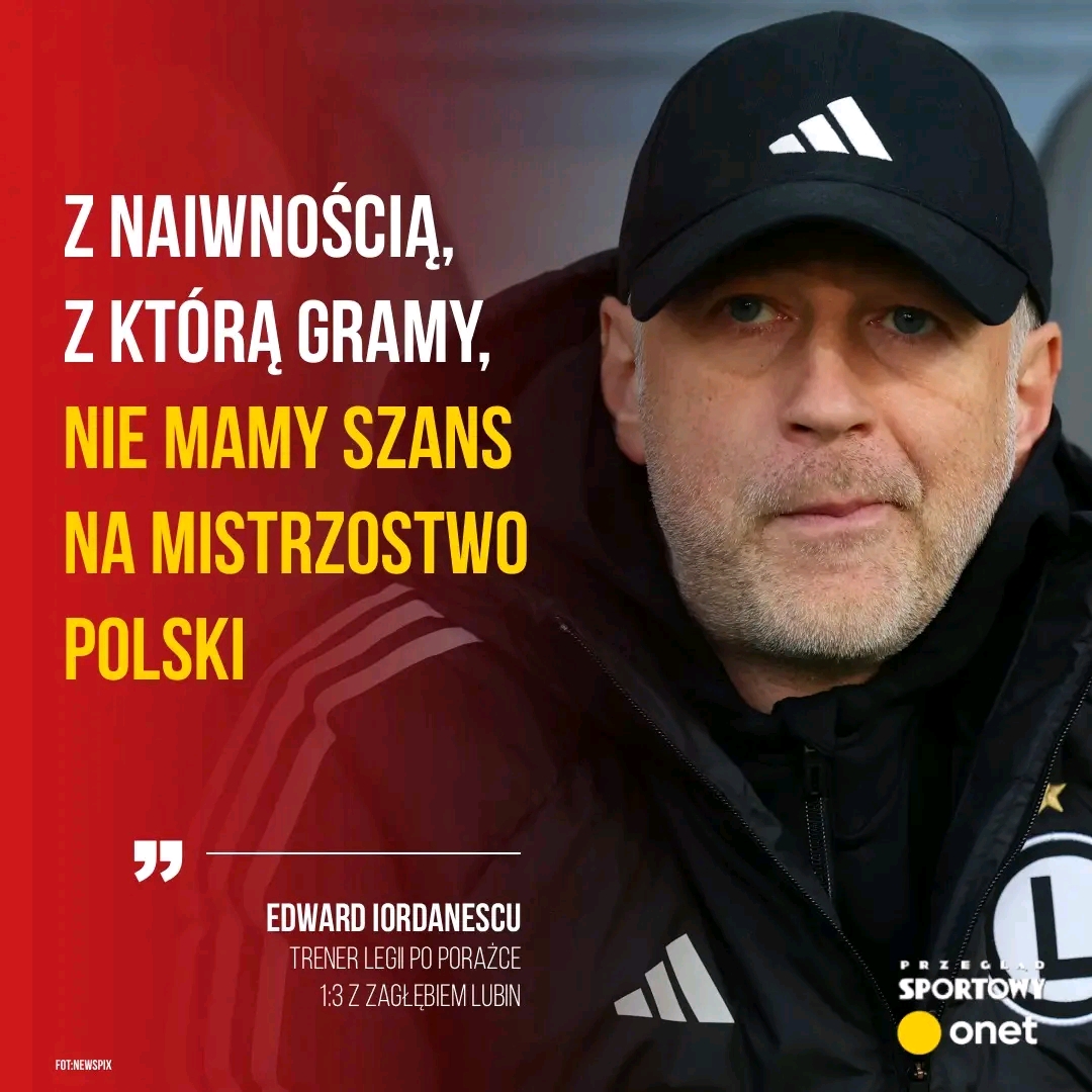 Po porażce 1:3 (0:2) w Lubinie z KGHM Zagłębiem Lubin trener Legii Warszawa Edward Iordanescu nie krył rozczarowania. — Przegraliśmy przez naszą naiwność. Nie ma znaczenia, że masz przewagę w posiadaniu piłki, skoro nie strzelasz goli — powiedział po spotkaniu.
