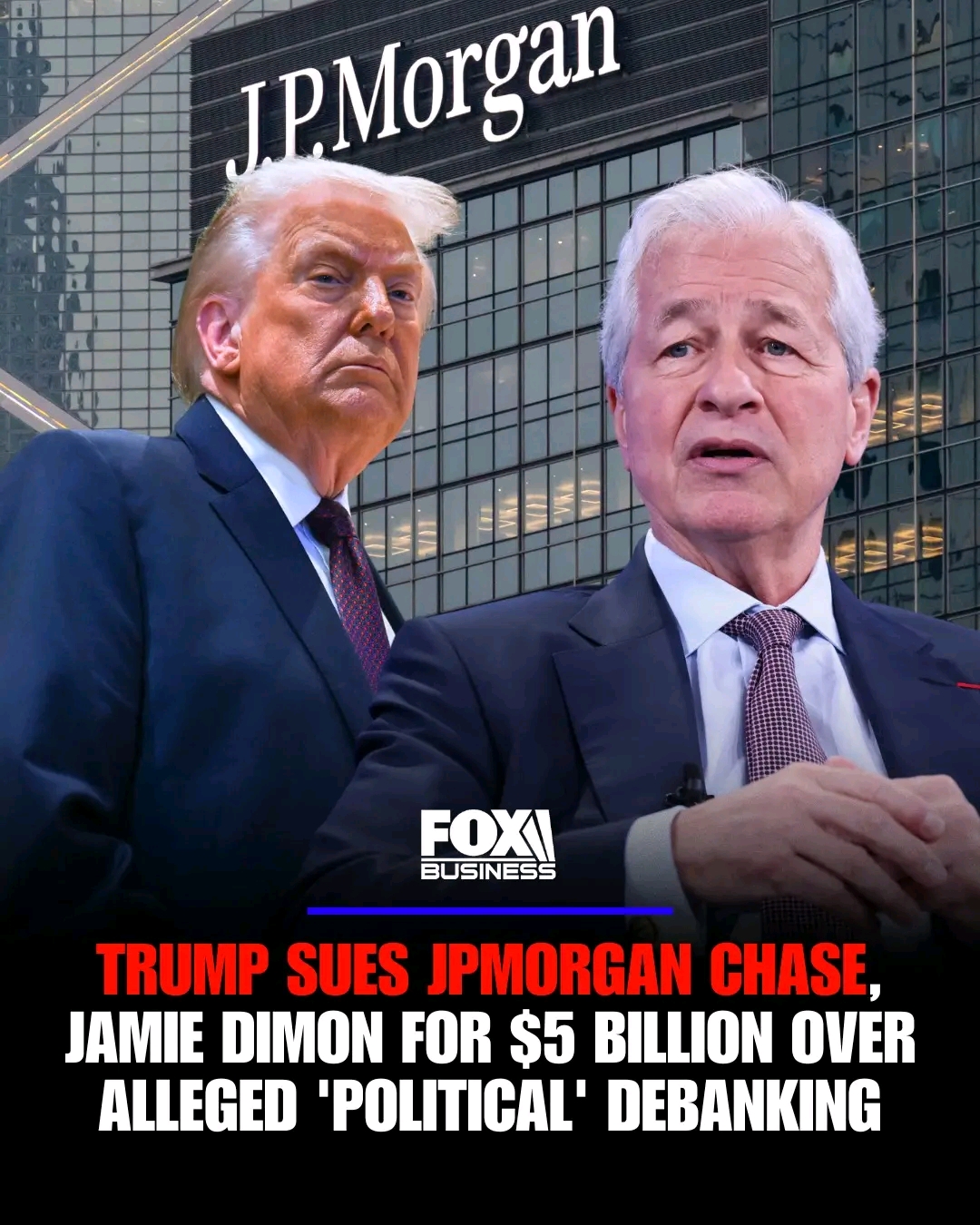 President Donald Trump is suing JPMorgan Chase and its CEO Jamie Dimon in a $5 billion lawsuit filed Thursday, accusing the financial institution of debanking him for political reasons.